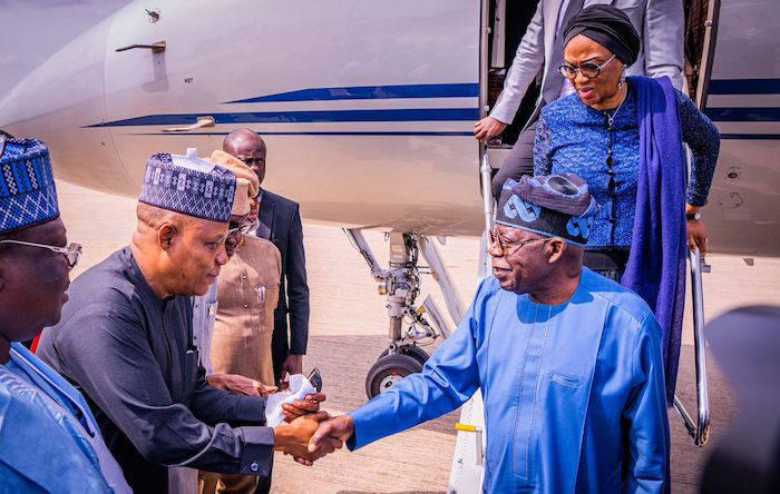 President Bola Tinubu arrived in Lagos in the early hours of Friday following a two-day state visit to the United Kingdom.
